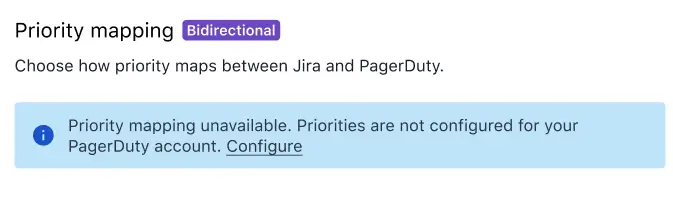 To map priorities between Jira and PagerDuty, your PagerDuty account must have access to the priorities feature, and your PagerDuty Admin must Configure Incident Priority.